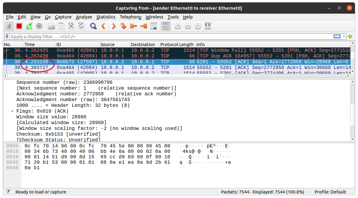 root@receiver:/home/ubuntu# echo 0 > /proc/sys/net/ipv4/tcp_window_scaling